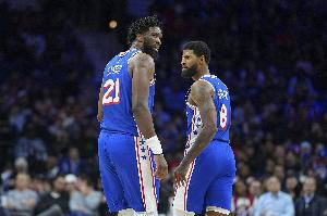 复出之后的两场比赛,恩比德场均出战32分钟,得到32分6篮板4.5助攻1.5盖帽,投篮命中率55.6%,三分命中率66.7%,罚球命中率81.8%。乔治自禁赛归来的两场比赛,场均砍下27分9.5篮板3助攻4抢断,投篮命中率48.7%,三分命中率41.6%(24中10)。