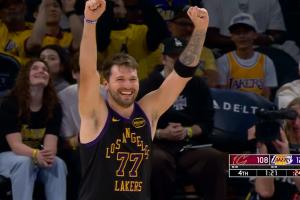 收获老詹认可!东契奇双手暴力勉扣!之后高兴犯规申请下班