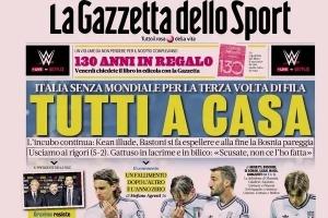 意大利叒无缘世界杯,意媒头版齐哀嚎:全部回家!