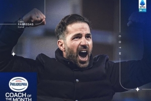 3战全胜!官方:科莫主帅法布雷加斯当选意甲3月最佳主帅