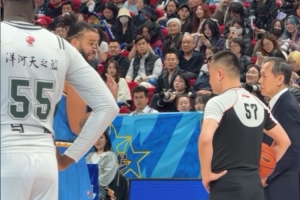 首节末段,场上出现了一个小插曲,麦基刚登场一回合,比赛就被裁判叫停,原因是麦基佩戴的牙套不合规定,最终许利民不得不用周琦将麦基换下。