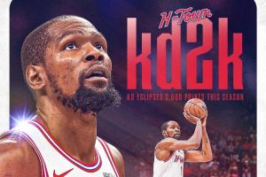 值得一提的是,这是杜兰特NBA生涯第8次单赛季得分2000+。