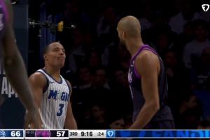 戈贝尔黄油手出界 贝恩推一把还不忘嘲讽:连喊四遍我的天哪😂~